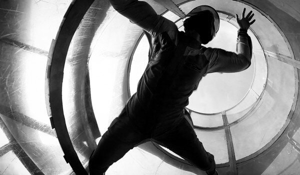 Инструктор постоянно контролирует твоей полет — разворачивает тебя, если надо, может приподнять твои руки или ноги, оттолкнуть тебя в сторону от стекла. В какой-то момент он может схватить тебя за комбинезон в районе поясницы и взмыть вместе с тобой вверх, к самому концу трубы. Труба открытая, чисто теоретически, если поток слишком сильный, человек может выбросить. Чтобы этого не происходило, за всем процессом неусыпно следит оператор — он увеличивает или ослабляет силу потока по мере необходимости.