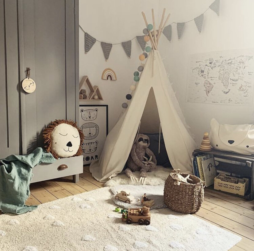 Маленькое уютное место, "штабик" для вашего малыша, там он сможет играть, хранить свои находки и читать книги. Причём вигвамы легко можно сделать своими руками. Если у вас есть домашние животные, вигвамы и для них прекрасно подойдут.
