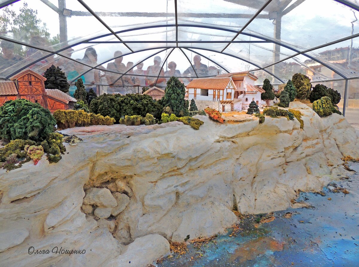 Для того, чтобы туристам легче было представить, как город выглядел раньше, сделали макет. Правда, временно конструкция была закрыта сверху плёнкой, не очень удобно фотографировать, резкости не хватает...