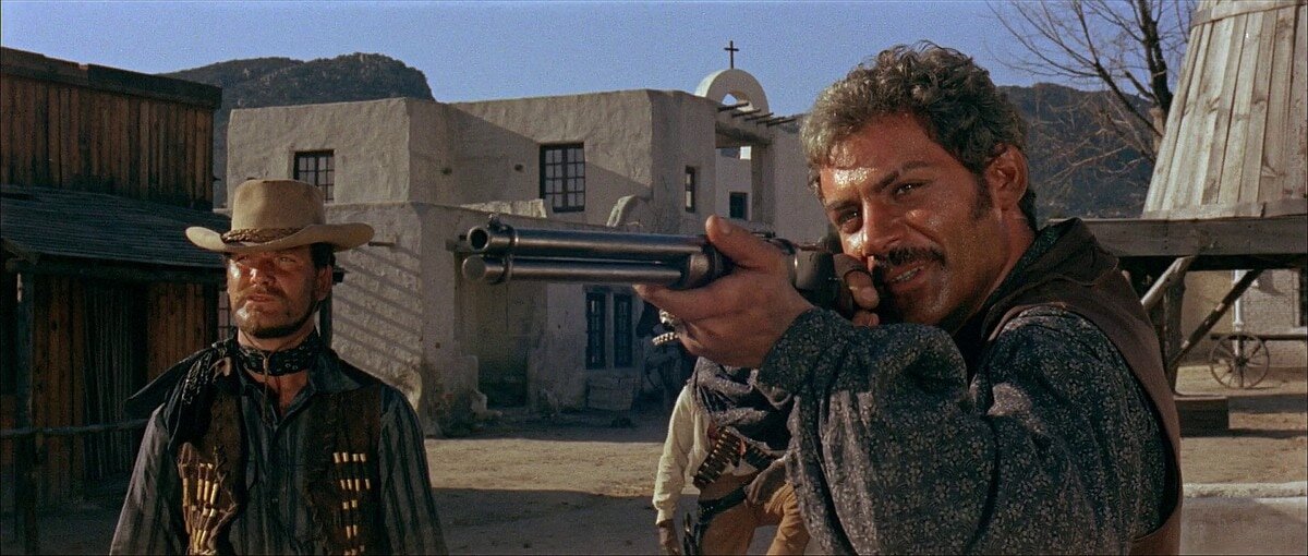 У Серджио Леоне есть ровно один супер-фильм и это не "Однажды в Америке". Как бы Вы меня не убеждали, но нет в этом фильме ничего интересного, это наркомания натянутая на криминальную драму, как сова на глобус. Самый лучший фильм этого режиссера - это "Хороший, плохой, злой". В чем крутизна этого творения? Да, пожалуй, только в том, что он не снят нахрапом. К данному фильму мэтр шел долго и уверенно. Сначала нужно было пристреляться. И первый фильм подготовивший будущий шедевр получил название "За пригоршню долларов". Определенно, этот выстрел не ушел в молоко. Уже здесь Леоне показал невероятное мастерство. Пусть не все в этом фильме удалось, где-то главный герой наигрывает на три зарплаты, где-то перестрелки не слишком удались. Но вот что в этом фильме очевидно прекрасно - это характеры и посыл.