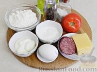Подготовить ингредиенты для приготовления пиццы на сковороде. Колбасу нарезать тонкими ломтиками. Помидор нарезать тонкими дольками. Сыр натереть на тёрке. В миску выложить сметану и майонез, вбить яйцо, посолить и поперчить. Перемешать до однородности. Всыпать всю муку. Венчиком замесить густое вязкое тесто без комочков. Холодную сковороду (диаметром 20 см) смазать растительным маслом. Выложить тесто и распределить его равномерно по дну сковороды. На тесто выложить колбасу. Затем помидоры. Присыпать сверху тёртым сыром. Поставить сковороду на средний огонь, накрыть крышкой и готовить пиццу на сковороде 20 минут. Сыр должен расплавиться, а тесто - подрумяниться. Вкусная и быстрая пицца, приготовленная на сковороде, готова. Приятного аппетита!