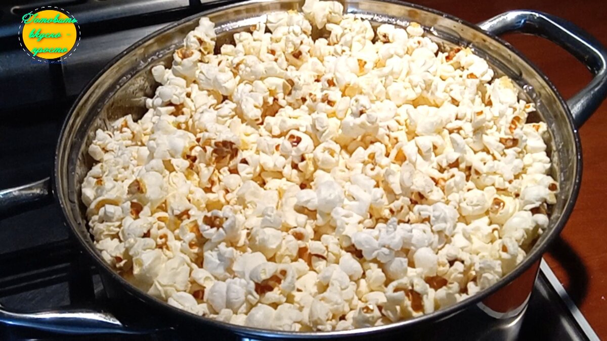 Накрываем быстренько крышкой. Спустя минуту попкорн начнет "взрываться".