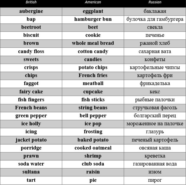 Привет! Предлагаю Вашему вниманию подборку распространенных названий блюд и продуктов, которые по-разному называются в американском и британском вариантах английского. Enjoy it! Друзья, а какой Ваш уровень английского? Пишите в комментариях. :) Если Вам понравилась данная подборка, и Вы узнали из неё что-то новое и интересное, подпишитесь на канал. На нём будет ещё много интересных публикаций, которые помогут Вам с изучением английского!