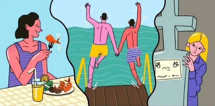 Отмечать решили прямо в отеле: в конце концов, all inclusive — еда и алкоголь есть. Праздновать начали прямо с утра: как бар у бассейна открылся, сразу же взяли пиво. Потом немного повысили градус и решили прокатиться с водных горок в отеле. Одна из них была как крытая труба. И вот я сажусь первым, качусь и… застреваю в середине. Пытаюсь сдвинуться с места, но не успеваю. За мной уже летит мой друг. Врезается в меня ногами, и мы вылетаем в бассейн.