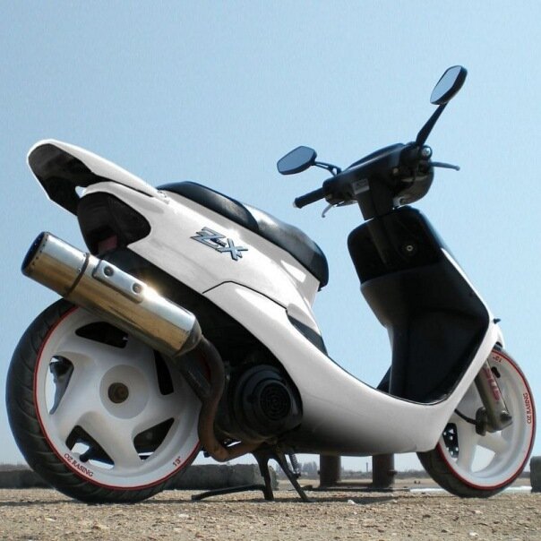 Как это не покажется странным, но тюнинг скутера, как и любого авто, тоже начинается с замены штатной выхлопной трубы. Считается, что новая выхлопная труба повлияет на скорость и мощность скутера, и, конечно же, станет притягивать взгляды прохожих своим блеском. Не стоит забывать, что в зависимости от вида выбранной вами новой трубы может понадобиться изменение настроек карбюратора или даже замена роликов вариатора. Если вы решили не останавливаться на замене выхлопной трубы, то можете попробовать заменить карбюратор. В этом случае необходимо не забыть установить новый воздушный фильтр и лепестковый клапан. Посудите сами, новый карбюратор, больше старого, соответственно воздуха ему необходимо больше, значит и фильтр должен соответствовать . Заменив все вышеперечисленное, можно заняться установкой нового цилиндра с большим объёмом и степенью сжатия. Замена цилиндра обязательно включает сам цилиндр, «палец», головку, крепёж и поршень вместе с поршневыми кольцами и комплект прокладок.