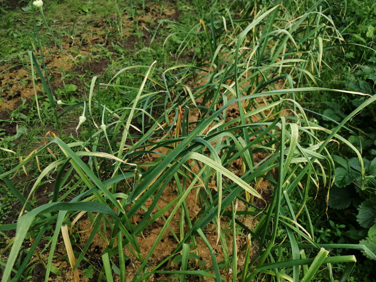 Могу сказать, то, что я напишу в этой статье является спорным моментом. Многие дачники дискутируют по этому поводу, кто-то делает эту процедуру, кто-то категорически против этого. Два года назад я увидел у одного соседа завязанный чеснок. Сосед объяснил мне, что эта процедура позволяет получить отличный урожай. В прошлом году я решил провести эксперимент, половина грядки я сделал, как сосед. Как не странно результат оказался положительным, там, где я произвел эту процедуру, чеснок был значительно лучше и крупнее. Известно, что в середине лета, в июле месяца происходит отток питательных веществ от листьев чеснока к луковице. Но отток питательных веществ происходит не так быстро, как, например, у лука. Считается, что если завязать перо чеснока в узел, то формирование луковицы ускорится. Также многие дачники утверждают, что после такой процедуры чеснок хранится дольше. Когда и как завязывать листья чеснока в узел Завязывать нужно будет в узел листья чеснока. Если листья чеснока длинные