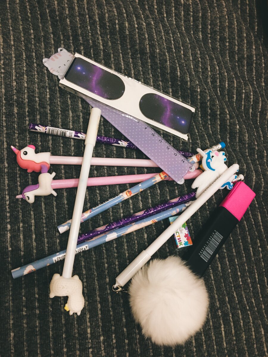 Зашла я сегодня после работы в магазин «Карусель » , купить мясо, чтобы приготовить своей старшей доченьке ее любимые отбивные. Иду я значит такая серьёзная и вижу......на полках с канцелярией жёлтые ценники с подозрительно низкими ценами. Подошла поближе и давай набирать канцелярские милые девчачьи принадлежности к школе, как истинный шопоголик. Итак, что же я взяла: Магнитные закладки за 9 рублей Карандаш простой с рисунком «лама» и стеркой за 6 рублей простой карандаш с единорогами, так же по 6 рублей Розовый текстовыделитель по 6 рублей Точилка - единорог за 9 рублей Ленточный корректор за 6 рублей милая линейка - котик за 6 рублей Голевая ручка с синими чернилами и ламой за 34 рубля Простой карандаш с яркими рисунками за 6 рублей. Приобрела все в двойном количестве для каждой дочери, не дорого а дети в восторге от всей это милоты))