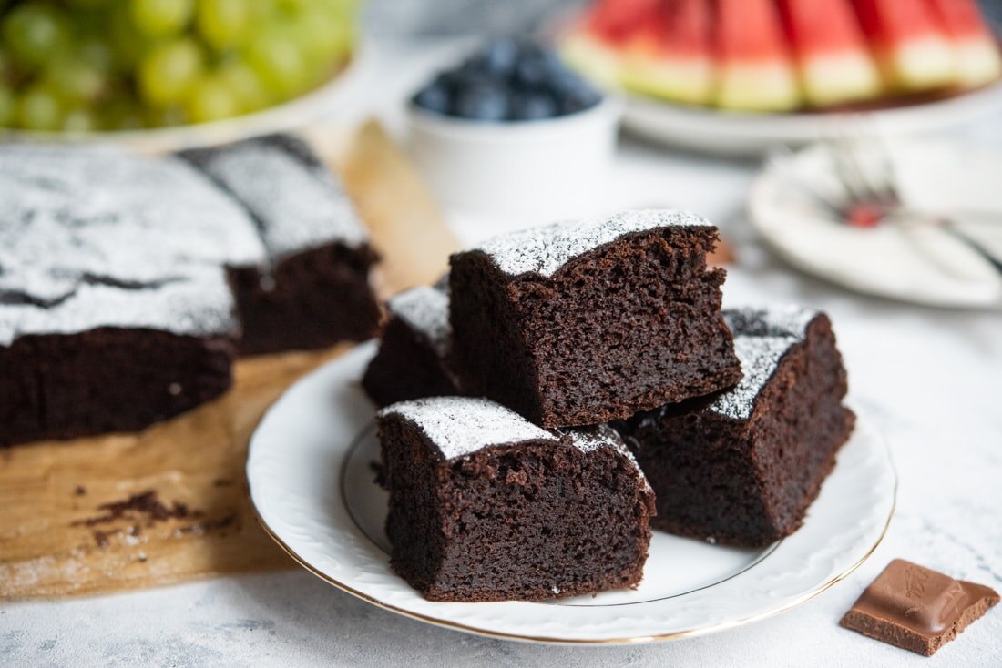 Когда вы видите этот торт, ваша первая мысль может быть: «Вау, какой вкусный пирог! В нем, наверное, тысяча калорий… »Но я вас удивлю, нет! Трудно поверить, вот как выглядит вкусный бобовый пирог ! Мягкий, слегка плотный, долговечный и действительно блестящий на вкус ... Это текстура классического брауни, но эта выпечка немного тоньше. Он состоит из красной фасоли, спелых бананов, яиц и не грамма муки! Вы не знаете, что взять с собой на пикник, в отпуск, на велосипедную прогулку или на выходные? Пирог из красной фасоли это здоровая, идеальная выпечка для всей семьи. Я люблю готовить их в основном в отпуске, потому что я часто беру их с собой во время путешествий. Помните, что приготовление этого пирожного действительно просто и быстро, и оно заменяет нездоровые батончики или булочки во время праздничных поездок. Рецепт для небольшой формы (15 × 15 см). Однако, чтобы сделать большую порцию теста в противне (24 × 24 см) умножьте все ингредиенты на x2. Подготовка: 10 минут. Выпечка: 4