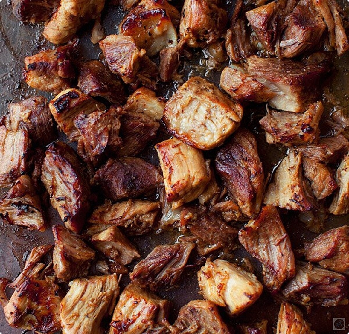 Эти нежные кусочки мяса тают во рту и подходят для приготовления буррито и тако. Ингредиенты: Способ приготовления: От мяса отрезаем жир (он не нужен) и нарезаем на большие куски примерно по 5 см. Кладём мясо в большую кастрюлю, посыпаем тмином, орегано, майораном, острым и чёрными перцами. Солим и перемешиваем. Туда также добавляем лавровый лист, зубчик чеснока и луковицу. Очищаем апельсин от кожуры, нарезаем пополам и выжимаем сок. Добавляем в кастрюлю сок и цедру апельсина. Теперь ставим кастрюлю на огонь, заливаем водой и доводим до кипения. Далее накрываем крышкой и ставим в разогретую духовку до 150° С примерно на два часа. После этого достаём кастрюлю из духовки, выкладываем мясо на тарелку и нарезаем его на меньшие кусочки (примерно по 1,5-2 см). Теперь убираем из кастрюли всё кроме оставшейся жидкости. Ставим её на огонь и выпариваем жидкость, чтобы остался только густой соус. Далее обратно выкладываем в соус мясо и перемешиваем. После этого обжариваем мясо в большой сковороде