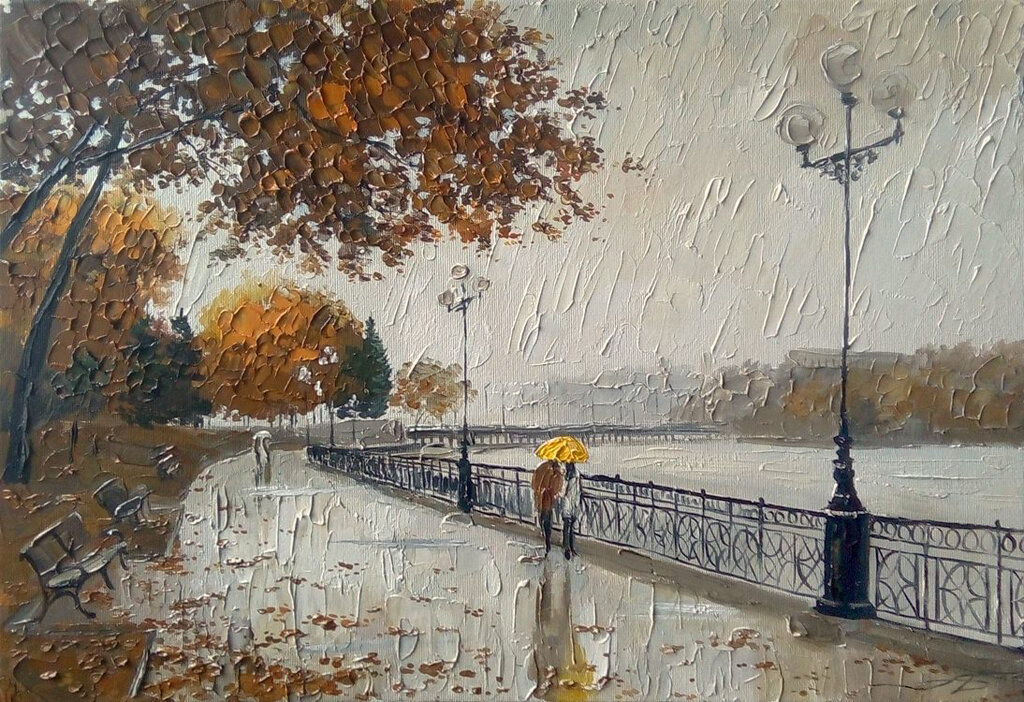 Тут вспомнил на досуге один случай. Шел восьмой час вечера, набережная реки, идешь такой себе отдыхаешь в свой выходной, из пяти дневной рабочей недели. Мимо проплывают теплоходы, в это время уже можно разглядеть все красоту разноцветных огней, впадающего в ночь города. Не могу сказать, что я сильно любил такие прогулки, но после недавних событий хотелось побыть одному. Дул прохладный ветерок, поднимал опавшие листья, тут что-то сверкнуло на брусчатке. Я встал к ограде и смотрел как ленивые волны идут одна за другой. «Где же оно? как я могла его потерять», услышал я за спиной. Обернувшись я увидел девушку, на ней был легкий сарафан бежевого цвета, слишком легко одета для такого времени года подумал я. Копошившись в листве она все повторяла одно и тоже. Наклонившись к ней, я показал рукой на место, где видел что-то. Она посмотрела на меня своими голубыми глазами полными отчаяния и не мешкая ринулась искать. Она поднимала каждый упавший лист бормотав если слышно, в надежде нет ли