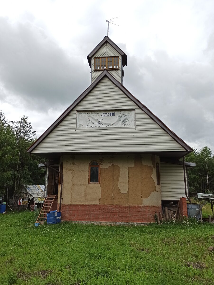 Дом на деревянном каркасе. Основным строительным материалом стали блоки соломы, точнее из ржи, смешанные с глиной. Толщина блоков 60 см. Глина местная, осталась после рытья колодца, ещё привезли соседи со своих участков.