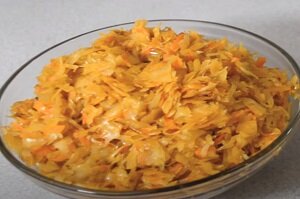 Существует немало рецептов, как приготовить вареники. Вареники с капустой не просто вкусные, но и полезные! Вы можете наслаждаться ими хоть каждый день, ведь приготовить их очень просто! Рекомендуется подавать со сливочным маслом и с жареным луком Ингредиенты для приготовления вареников с капустой Начинка: Тесто: Вареники с капустой — рецепт с фото Шаг 1 — Подготовим капусту Капусту подготовьте заранее. Рецепт приготовления капусты можете найти на нашем сайте Шаг 2 — Возьмем муку и воду Возьмем 500-700 гр. муки. В муку добавим один стакан воды (250 мл.). Шаг 3 — Перемешаем и замесим тесто Замешиваем тесто. Сначала ложкой, потом на столе руками. Месить надо минут 5-7 Шаг 4 — Тесто замешено Через 5-7 минут замешивания тесто должно получится упругим, гладким. Не тугим. Должно держать форму и быть в то же время мягким. Накройте тесто крышкой или тарелкой и оставьте настоятся на 30 минут Шаг 5 — Слепим формочки для вареников Возьмите кусочек теста и раскатайте его скалкой. Тесто должно