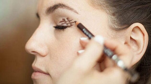 32. Нанесите белый карандаш на водную линию, если хотите скрыть покраснение глаз.