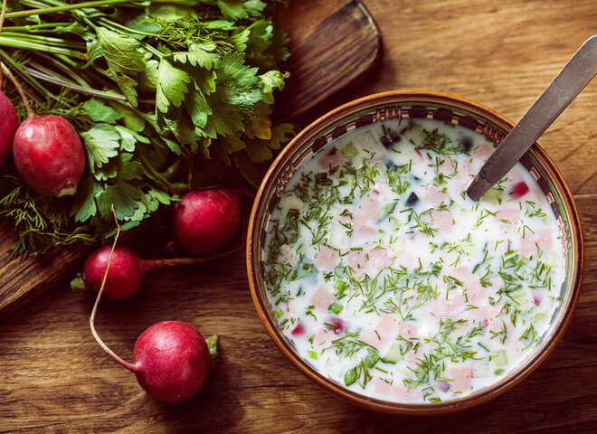 Да! лето конечно в этом году выдалось очень жарким ! Хочется чего то максимально легкого и холодненького . Представляю вашему вниманию топ 3 : 1. На первом месте хорошенько обосновалось всеми любимая легендарная "Окрошка". У всех хозяек свой рецепт ее приготовления кто-то готовит на квасе или кефире. Я расскажу свой краткий рецепт : ингредиенты : 2 огурца 3 яйца отварных 2 картофелины отварные 300 гр ветчины 4 редиски 0.5 л кефира зелень по вкусу Все режем мелким кубиком, заливаем кефиром, ставим в холодильник на пару часов и ГОТОВО! 2. Вторым блюдом у нас будет кабачковая запеканка так как сезон кабачков настал. Блюдо очень простое в приготовление ,а самое главное легкое ! Ингредиенты : 2 маленьких кабачка 3 яйца 4 ст. молока 1 ст.сметаны Кабачки обжариваем на сковороде или в духовке до готовности . В отдельной чаше смешиваем венчиком яйца молоко и сметану . Выкладываем кабачка в форму заливаем заливкой солим добавляем специи посыпаем тертым сыром и ставим в духовку разогретую до