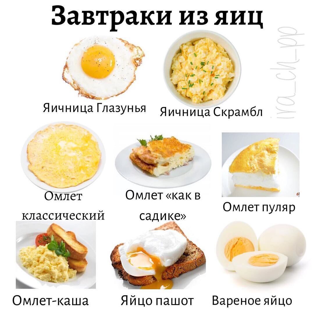 1️⃣Глазунья 👀 Самый простой вариант яичницы) Разбил, вылил на сковороду и ждёшь, когда поджарится) Ну и можно проявить фантазию - дополнить овощами, зеленью.