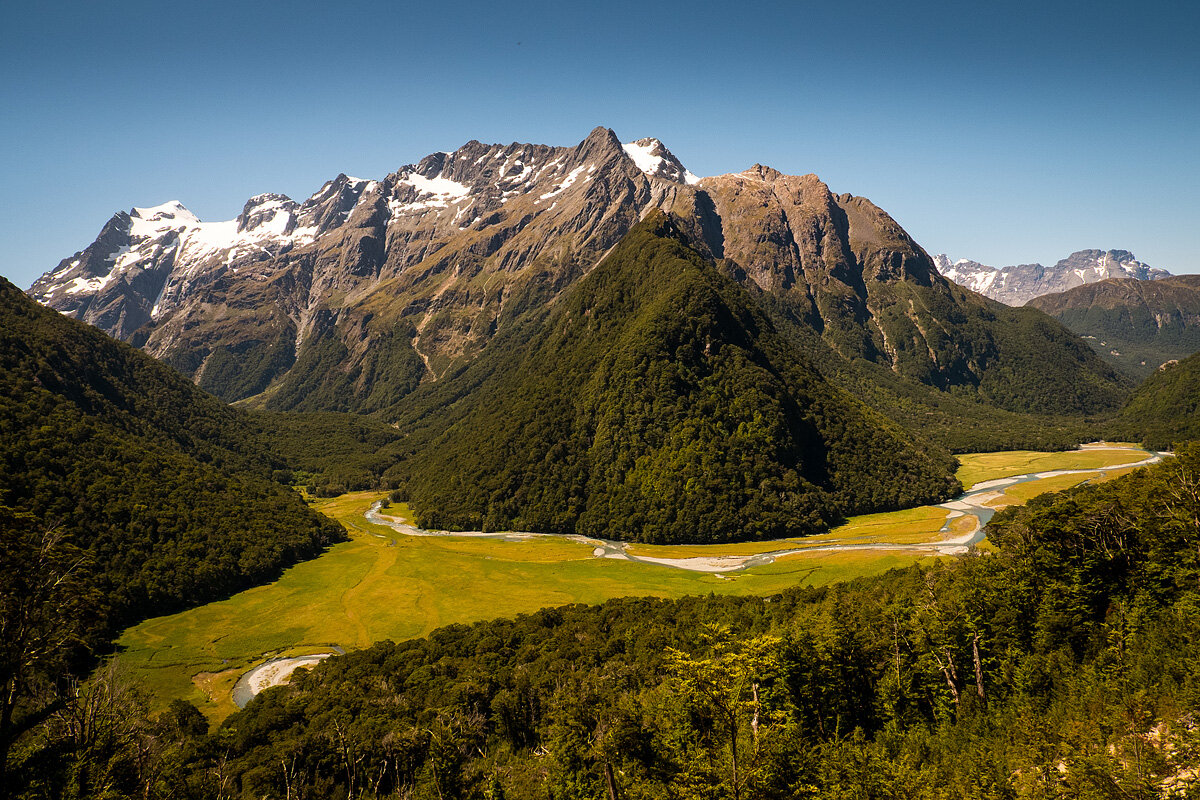Опять таки, как и везде в Новой Зеландии: все треки утоптаны, почти повсеместно покрыты щебёнкой, даже в километрах от базовых лагерей встречаются ступеньки и биотуалеты, а уж мосты через ручьи - просто обязательно. Да! Трава по краям троп иногда пострижена(!).