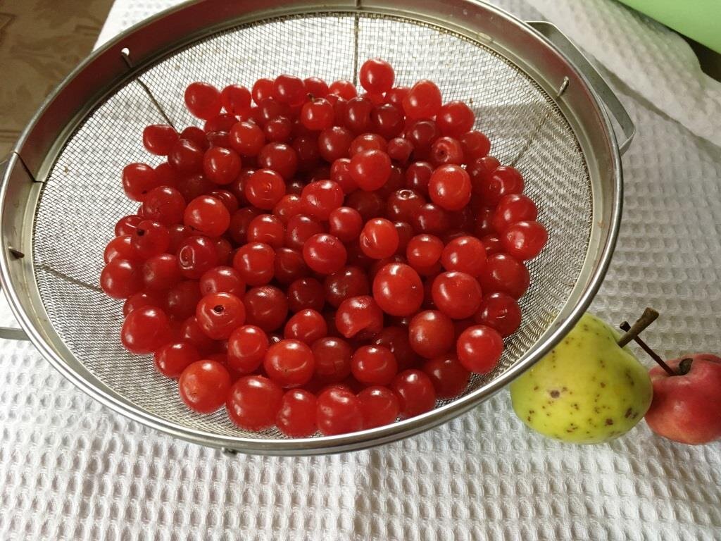 Этот способ будет полезен тем, кто уделяет внимание своему здоровью и правильному питанию. Ведь чтобы общество делало выбор в пользу полезных продуктов, нужно чтобы появилась прочная мода на замороженные продукты. (Понятно же, что без сахара, соли, уксуса все полезнее:). И я уже несколько лет замораживаю войлочную вишню. Хотя прежде всегда из этой вишни готовила компот, варила варенье. Но нужно понимать, что войлочная вишня и без того очень сладкая, ей не нужен сахар совсем. Поэтому обычную вишню я сварила, а этот вид - заморозила. Она зимой получается совсем как свежая, но нужно придерживаться некоторых простых правил. Во-первых: если собирали ягоды в сухую погоду, то можно их совсем не мыть перед заморозкой. (Я собирала в дождь, поэтому помыла от мелких веточек и листиков). На верхнем фото видно, что вишню я мыла, потом оставила ненадолго, чтобы стекла вода. Во-вторых: сразу делим ягоды на маленькие порции. Один пакетик - на один раз. Там примерно у меня 120 граммов - это примерно 2