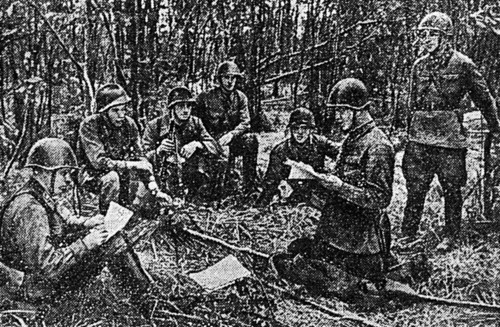В течение 28 июля наши войска продолжали вести бои на Смоленском и Житомирском направлениях. Наступление противника на этих направлениях разбивается о стойкость и упорство наших войск. Наши войска местами переходят в решительные контратаки и наносят противнику тяжелые потери. На остальных направлениях и участках фронта крупных боевых действий не велось. Наша авиация во взаимодействии с войсками наносила удары... Полная версия статьи: https://smolgazeta.ru/svodki-sovinformbyuro/77980-ot-sovetskogo-informbyuro-28-iyulya-1941-goda.html На фото: действующая армия. Заседание партийного бюро N части перед боем. Секретарь партийного бюро политрук В. Пелевин (второй справа) зачитывает заявление лейтенанта В. Толмачева о приеме его в кандидаты ВКП(б). Снимок специального фотокорреспондента П. Бернштейна. «Красная звезда», № 176 (4931), 29 июля 1941 г.