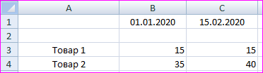 Продолжаем дорабатывать модель по учету и анализу продаж в Excel и добавляем в нее возможность изменения цен. Так как основной реестр покупок и продаж будет вестись в пределах года, и хотя бы одно изменение цены будет обязательно. Изменение цен включает в себя два блока: 1) переоценка остатков; 2) изменение цены оприходования в зал. Например, цены изменяются с 15.02. В нашей модели цены отражаются на отдельном листе в таком формате Согласно отчету об остатках на 14.02 Товара 2 остается 180 единиц (как сделать такой отчет рассказано в этой статье, если все формулы в отчет занесены верно, и дата в основном реестре и отчете заносится в одинаково формате, то для занесения последующих период в отчет достаточно просто скопировать формулы из предыдущего периода) Следующая строка отчета на 15.02 будет выглядеть так Отразим покрупнее блок со стоимостной информацией Из отчета видно, что 15.02 поменялось название прейскуранта и цена на Товар 2, стоимость пересчитывается автоматически. Обратите в