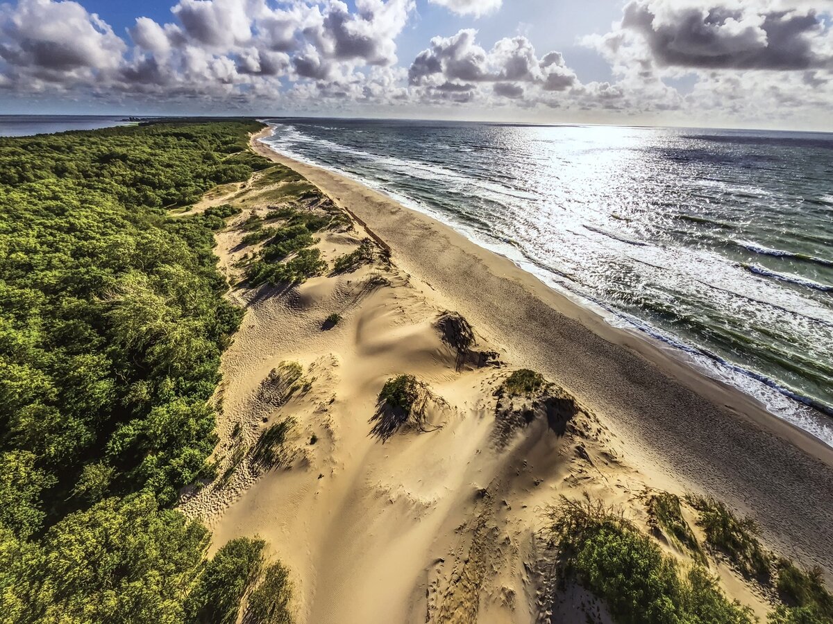 Куршская коса. Узкая и длинная песчаная полоса суши (коса) саблевидной формы, отделяющая Куршский залив от Балтийского моря. Простирается от города Зеленоградск Калининградской области до города Клайпеда (Смильтине, Литва). Название косы происходит от названия древних племён куршей, живших здесь до колонизации Пруссии немцами. Куршская коса содержит природные ареалы, наиболее представительные и важные для сохранения биологического разнообразия, включая те из них, где сохраняются исчезающие виды. Благоприятные климатические условия позволяют отдыхать на Куршской косе в период с мая по ноябрь. Фактически коса является полуостровом, так как в районе Клайпеды находится пролив, соединяющий Куршский залив и Балтийское море, по которому в Куршский залив и обратно проходят суда. На литовской стороне через пролив между косой и городом Клайпеда курсируют пассажирские и автомобильные паромы. Рядом с проливом в старом немецком форте расположен Литовский морской музей. Здесь туристы могут посмотре