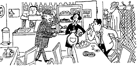 «На сегодня с меня довольно», — сказал инспектор Варнике, входя в ресторан после напряженного дня. Но не успел инспектор закрыть за собой дверь, как услышал громкий разговор. — Вы ведь еще заказывали свиную отбивную, — сердито говорила официантка, обращаясь к слегка подвыпившему клиенту. — Да не заказывал я никакой свиной отбивной! — отвечал возмущенный клиент. — Разрешишь себе зайти на пару часов в ресторан, стараешься быть максимально экономным, и на тебе! — Вы пьяны и совершенно не помните, что заказывали за эти два часа, — продолжала спорить официантка. — Но зато вы хорошо знаете, что он не мог заказать это блюдо, — вмешался в разговор инспектор. — Прошу вас пройти со мной до ближайшего полицейского участка! Как инспектор догадался, что официантка обманывала клиента? Ответ Вывеска на кухонной двери гласит, что в ресторане горячие блюда можно заказывать лишь до 15 часов. Так как часы (левый верхний угол на картинке) показывают 18:15, а клиент находился в ресторане всег