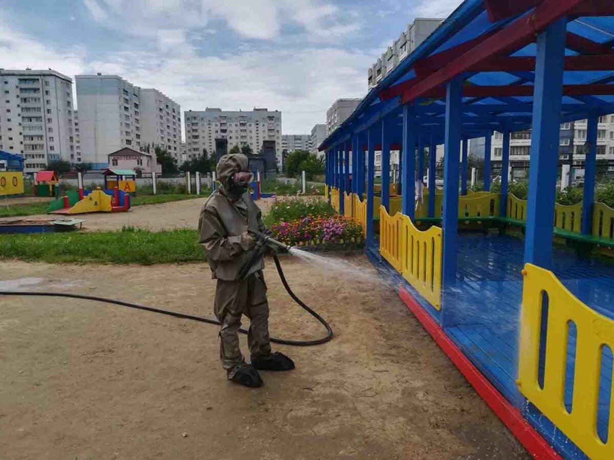 С целью предупреждения распространения коронавирусной инфекции и обеспечения безопасности граждан, в Ангарске военнослужащие оперативного полка Росгвардии оказывают помощь администрации городского округа в проведении дезинфекции детских образовательных учреждений. Подразделения радиационной, химической и биологической защиты оперативного полка, экипированные средствами индивидуальной защиты, проводят обработку безопасным для людей и животных хлорсодержащим раствором (гипохлоритом натрия). Дезинфекции будут проводиться на территориях муниципальных детских садов, работающих в режиме «дежурных» групп, а также территориях общеобразовательных организаций в период проведения единых государственных экзаменов (ЕГЭ).