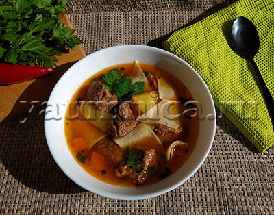 Суп с галушками или манчиза является самым популярным первым блюдом в узбекской кухне. Готовится он с мясом и получается густым, сытным и с насыщенным вкусом. Для его приготовления берут телятину или мясо молодого барашка.