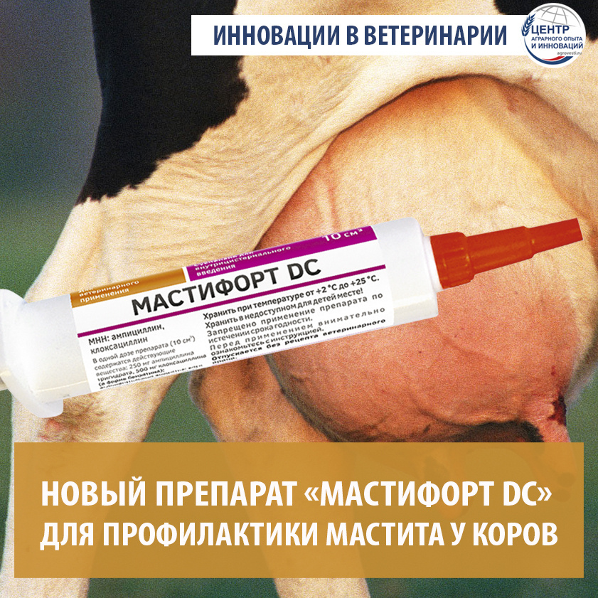 🔺Белорусский производитель ветеринарных препаратов ООО «Белкаролин» представил новую разработку — «Мастифорт DC» для одномоментного запуска коров с целью лечения и профилактики мастита бактериальной этиологии у коров в сухостойный и послеродовой периоды. Применение препарата «Мастифорт DC» обеспечивает защиту от мастита коров на протяжении всего сухостойного периода и снижает заболеваемость после родов. Препарат обладает пролонгированным противомикробным действием в течение 48 суток после применения. 🔺Отличительной особенностью «Мастифорт DC» является то, что это антибактериальный комбинированный препарат для интрацистернального введения, в состав которого входят труднорастворимые соли полусинтетических пенициллинов — ампициллина и клоксациллина, которые эффективны против возбудителей мастита, выделяемых из секрета вымени коров, включая Streptococcus spp., Staphylococcus spp., Clostridium spp., Escherichia coli и другие, в том числе штаммы, устойчивые к пенициллину, резистентность ко