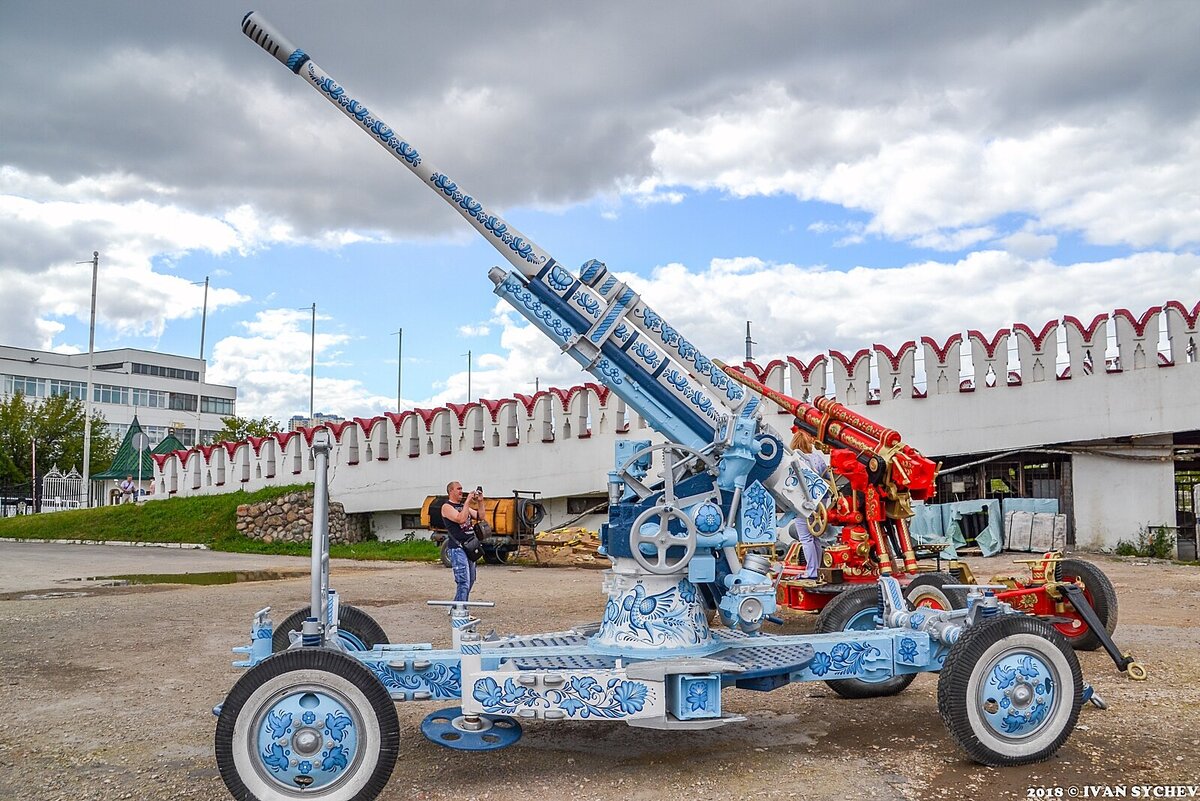 1. И, как мне кажется, при упоминании оружия и Измайлово - первое, что приходит в голову, это кошмар и ужас возле псевдорусского, пряничного Измайловского кремля, который этим кремлем не является, а полностью новодел. Ну и больная фантазия дизайнера превратила оружие вот в это.