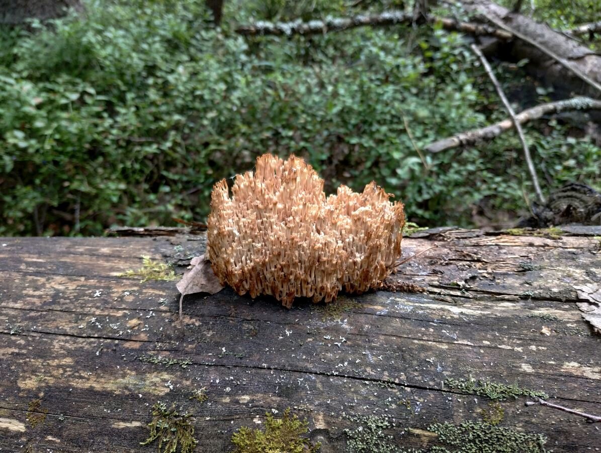 На днях был в лесу и увидел красивейший редкий в наших местах гриб. Ну, не то, чтобы совсем уж редкий, просто именно такого размера этот гриб я не так часто встречал, а тут такая удача. Если я не ошибаюсь - это гриб рогатик. Так как я не сильно разбираюсь в таких грибах, то могу предположить, что это рогатик прямой, хотя может и не он. Интересно то, что в нашей местности этот гриб (в меньшем размере) встречается почти исключительно на трухлявых деревьях, вся его грибница постепенно, иногда совместно с трутовиками, разрушает древесину, превращая её в труху. Как видно по фотке, гриб растет на стволе хвойного дерева, хотя и на других бывает, место влажное, а плодовое тело гриба устремлено вверх, множественными столбиками. Выглядит красиво. Окраска желтовато-оранжевого цвета, есть и коричневые оттенки. Вообще, гриб сразу на себя обращает внимание. Можно его есть? Я не знаю, пока не пробовал, просто любовался его красотой. Но ради интереса нюхнул его, и ничего особенного не почувствовал. Сч