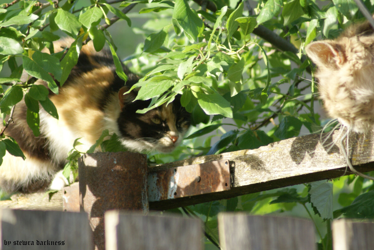 Слов в этот раз будет немного. Потому что на эту кошку можно только смотреть. У нее нет породы, но она отличная мышатница. Дома не живет - дикаркой пришла, ночует только в плохую погоду зимой. Остальное время болтается где-то по улицам, возглавляя стайку соседских котов-крысятников. Она, как только появилась в нашем дворе - сразу приобрела авторитет у всех мяукающих, так до сих пор и живет в авторитете. А любимое место отдыха у Муры - цветник. Она чем-то похожа на Кармен. Ну, и конечно, деревья. Не прощаюсь. Всем громкое "Мяу!"