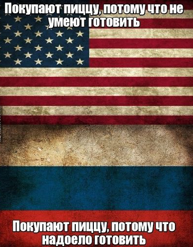 Доброго времени суток! Россия великая страна, которую знают все люди в мире. Главным конкурентом России является США, поэтому там обсуждение нашей страны весьма успешно. Конечно же не обходится без юмора. Как же шутят про Россию в Америке? – Что получается у русских, когда они смешивают водку со святой водой? – Святой дух! Оказывается мы алхимики. – Что общего у «Лады» и ванны? – Ни из одной не хочется вылезать прилюдно А если бы "Лада" делала ванны? Только подумайте: два символа России — бутылка водки и матрешка — удивительно похожи. Сначала ты открываешь одну, потом вторую, потом третью, потом четвертую… Интересный факт - самая большая матрёшка насчитывает 72 фигурки. Как удвоить стоимость «Лады»? Залейте в бак литр бензина. Бензин дорогой - это правда. В Америке ты ненавидишь правительство, в cоветской России правительство ненавидит ТЕБЯ! Бадумтс. Что в Америке — теория заговора, в России — суровая реальность Поддерживаю, пользуясь 5G вышкой. — Are you from Russia? — Естественно. —