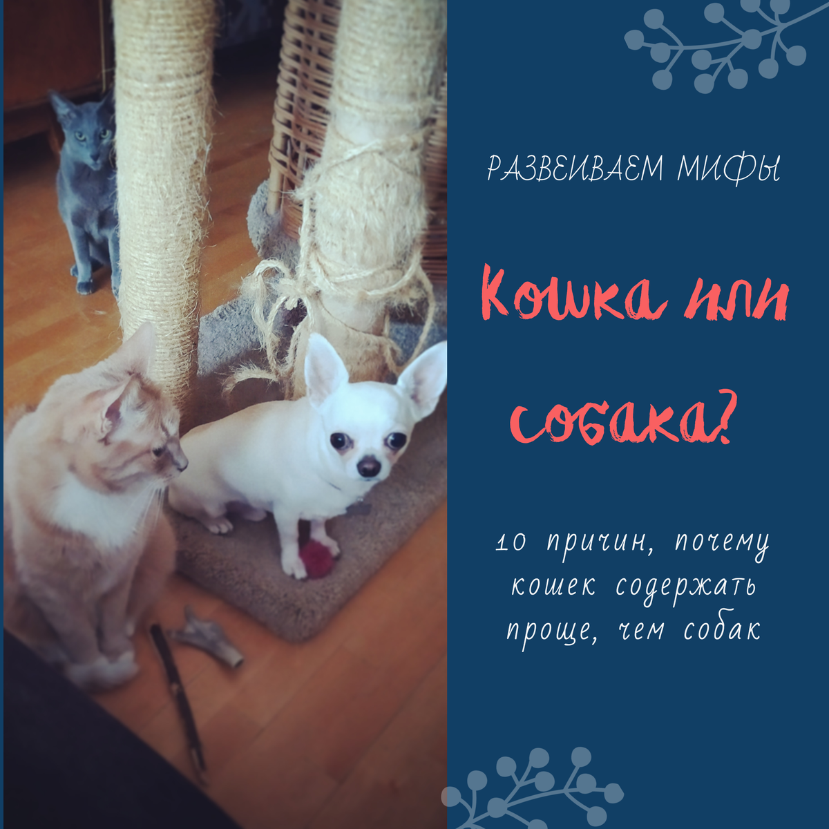 А вот не соглашусь с этим утверждением! Кошки могут также требовать внимания, как и собаки! Они также приносят хозяину игрушку, чтобы тот им ее покидал, волокут через всю квартиру «удочку», напоминая, что настало время игры, забираются вам на грудь, чтобы вы их погладили, пока лежите на диване, мнут вас лапками и бодают лбом, напоминая, что пора бы пойти лишний раз подкрепиться. Несомненно, бывают кошки независимые, которые объявляются рядом с хозяином, только когда наступило время еды, но это больше исключение, чем правило. Ну и кошки также будут охранять свое личное пространство, как и уважать наше. Собака будет чаще настроена на взаимодействие (да почти всегда!), чем кошка. Тут вы рискуете получить когтистой лапой по рукам, если явитесь со своими ласками не вовремя.