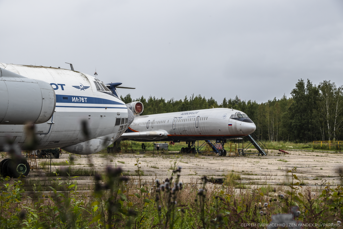 Есть возле аэропорта "Шереметьево" такое место - учебная площадка Московского государственного технического университета гражданской авиации. Здесь стоят несколько советских самолётов, которые хорошо видно, когда проезжаешь по Шереметьевскому шоссе.