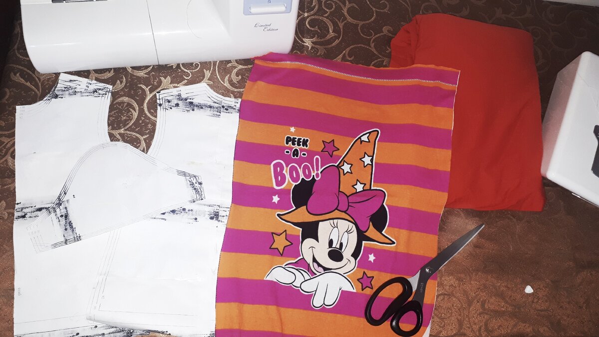 Сегодня хочу показать, как я сшила для дочери футболку из панели с Минни (героиня из мультфильма).