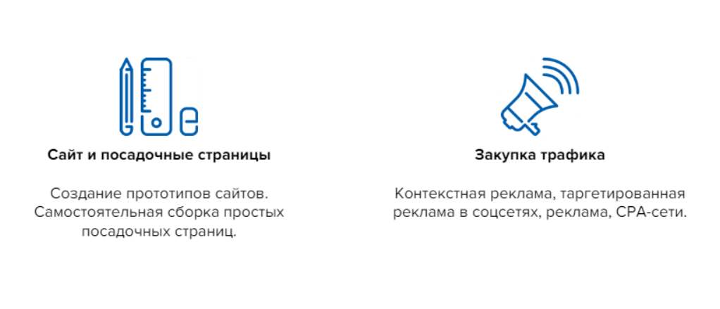 Сложно найти такой интернет-проект у которого нет сайта, либо какого-то места, куда можно прийти и почитать информацию о компании. Вы пишете тексты, расставляете картинки, думаете о том, как пользователь будет по-вашему сайту ходить, в какой момент совершит действие, собираете прототип страницы. И на самом деле, кажется, что любой современный интернет маркетолог должен уметь делать простейшие сайты самостоятельно. Есть такой прекрасный инструмент Tilda, и на нём можно собрать страницу даже не обладая никакими специальными навыками создания сайтов. Это просто такой конструктор в котором вы накидывает элементы и у вас получается более-менее хороший сайт. И если вы умеете собирать страницы, это, безусловно, ваше конкурентное преимущество.