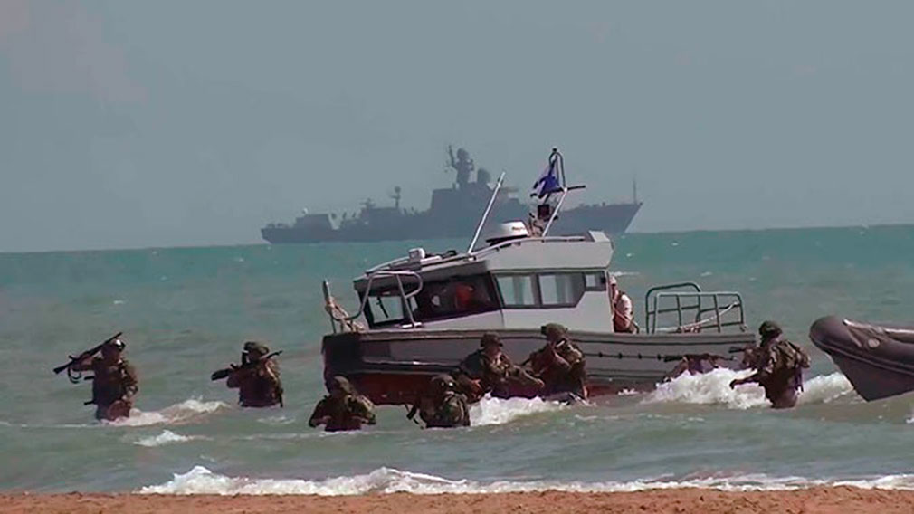 В учениях в Дагестане морские и воздушные пехотинцы Каспийской флотилии имитировали бой
