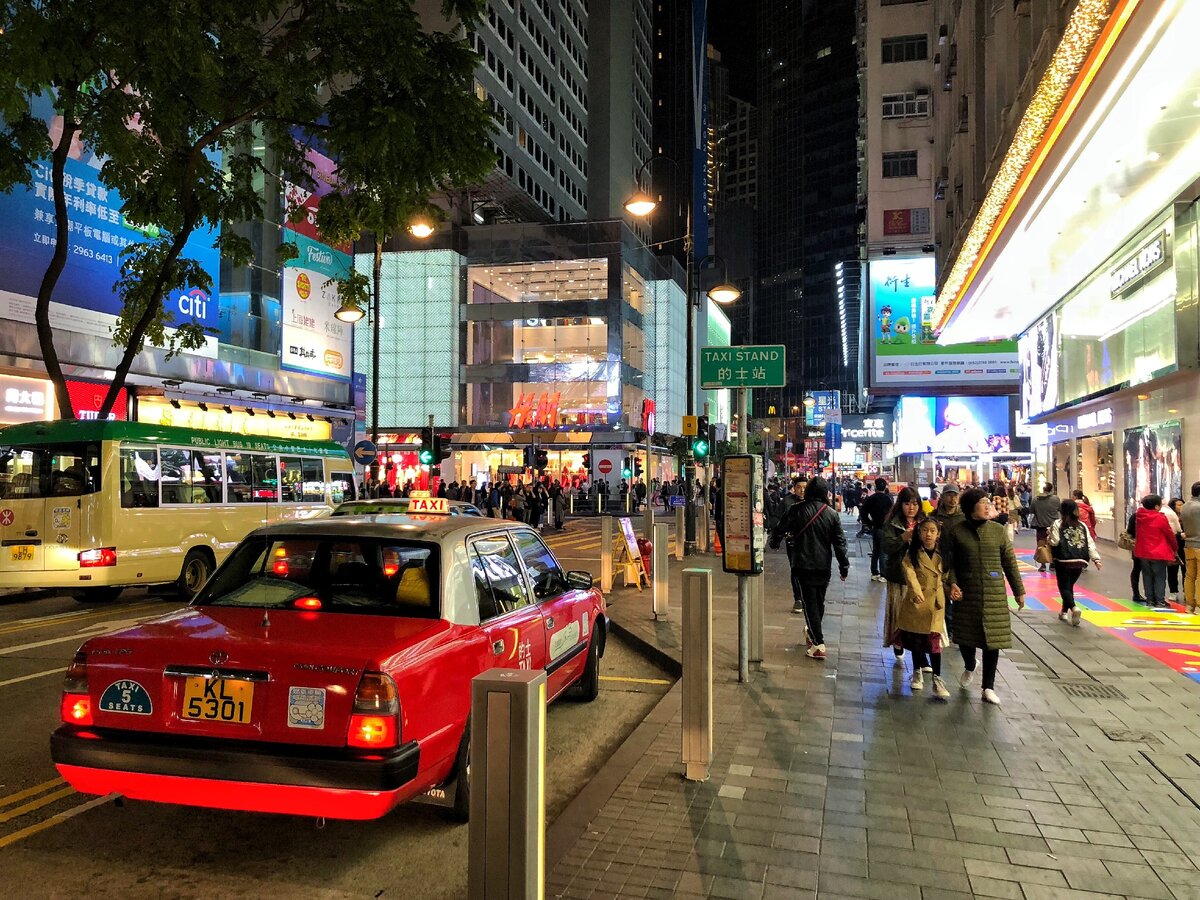 Большинство машин на улице — это такси, ведь передвигаться на личном транспорте в Гонконге, как и в большинстве крупных городов, просто неудобно и дорого.