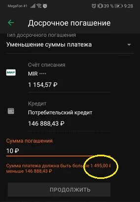 UPD: пока дописывала статью, вспомнила, что всё-таки внесла ЧДП в сумме 11 тысяч, и сумма кредита стала меньше. Возможно, минимальная сумма для ЧДП зависит от суммы кредита, но это не точно...