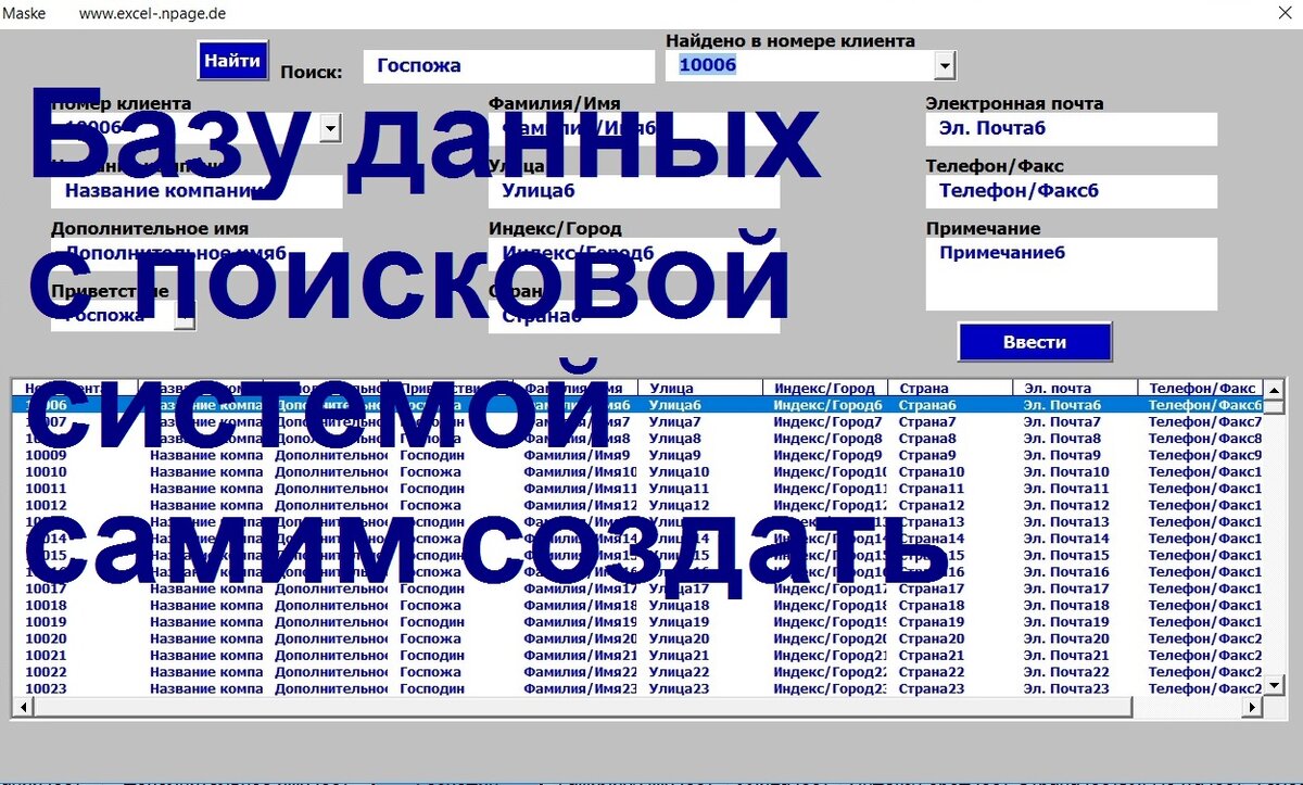 Базу данных с поисковой системой в Excel VBA самим создать