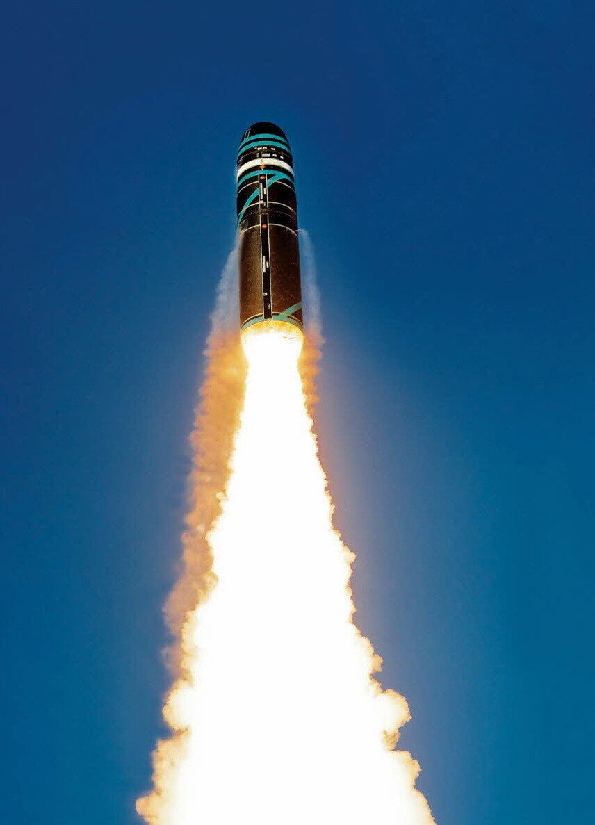 Трайдент II — привет из 90-х, но обновлённый и модернизированный. Эта БРПЛ была способна нести 14 боеголовок, но после усовершенствования их число снизилось до пяти (мощностью в 475 кт каждая). Диапазон зависит от груза и варьируется от 7,8 тыс. км до 11 тыс. Вероятное отклонение — всего 120 метров, что делает её одной из самых точных ядерных ракет в мире.