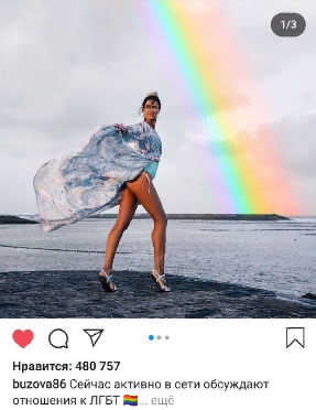 Российская певица, телеведущая, обладательница многомиллионной аудитории, Ольга Бузова выложила пост, в котором поддержала ЛГБТ-сообщество. В своем обращении она подняла вопросы, на которые людям следует переключить внимание, вместо того, чтобы усиливать ненависть по отношению к представителям сексуальных меньшинств. На данный момент пост набрал 480 тысяч лайков и 12 тысяч комментариев, что превышает среднюю статистику Олиного инстаграма, однако мнения подписчиков разделились. Кто-то высказывает благодарность за поддержку и поднятие столь важной темы. Другие же, напротив, показывают разочарование в артистке. Мы полностью поддерживаем певицу, на наш взгляд, данный пост-большой шаг в преодолении проблем, связанных с гомофобией. Стоит отметить, что Ольга не первая медийная личность, выступающая с подобной позицией. Ранее, телеведущая Ксения Собчак выпустила юмористический ролик, высмеивающий действия властей по отношению к мороженному "Радуга". Очень надеемся,что все это найдет отклик в