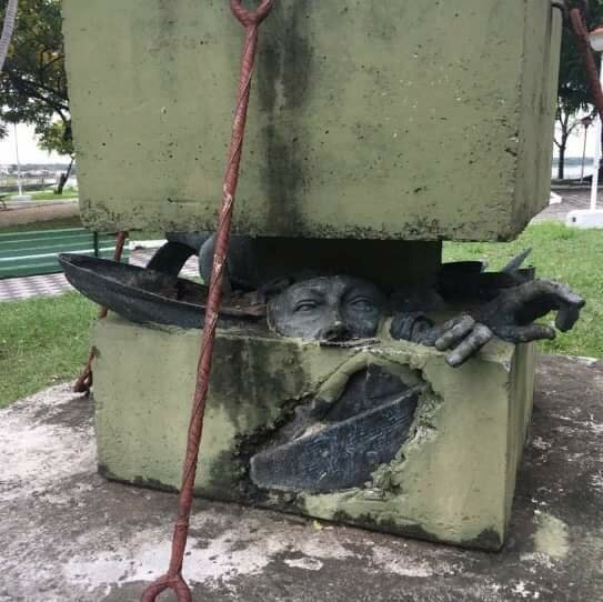 Классический латиноамериканский диктатор Альфредо Стресснер 8 раз избирался президентом Парагвая с 1954 по 1989, когда через пол–года после очередного переизбрания был вдруг внезапно свергнут в результате военного переворота. Монумент переделан из оригинального разрушенного памятника себе любимому, сверху придавлен бетонной плитой, которая удерживается ржавыми скрепами. На памятнике надпись: "Больше никогда" Стресснер после переворота сбежал в Бразилию и прожил там 17 лет вплоть до своей смерти в 2006 году в возрасте 93 лет. С тех пор в Парагвае никому нельзя быть президентом больше одного раза без всяких оговорок и исключений. ВОТ ТАК ДОЛЖНО БЫТЬ!