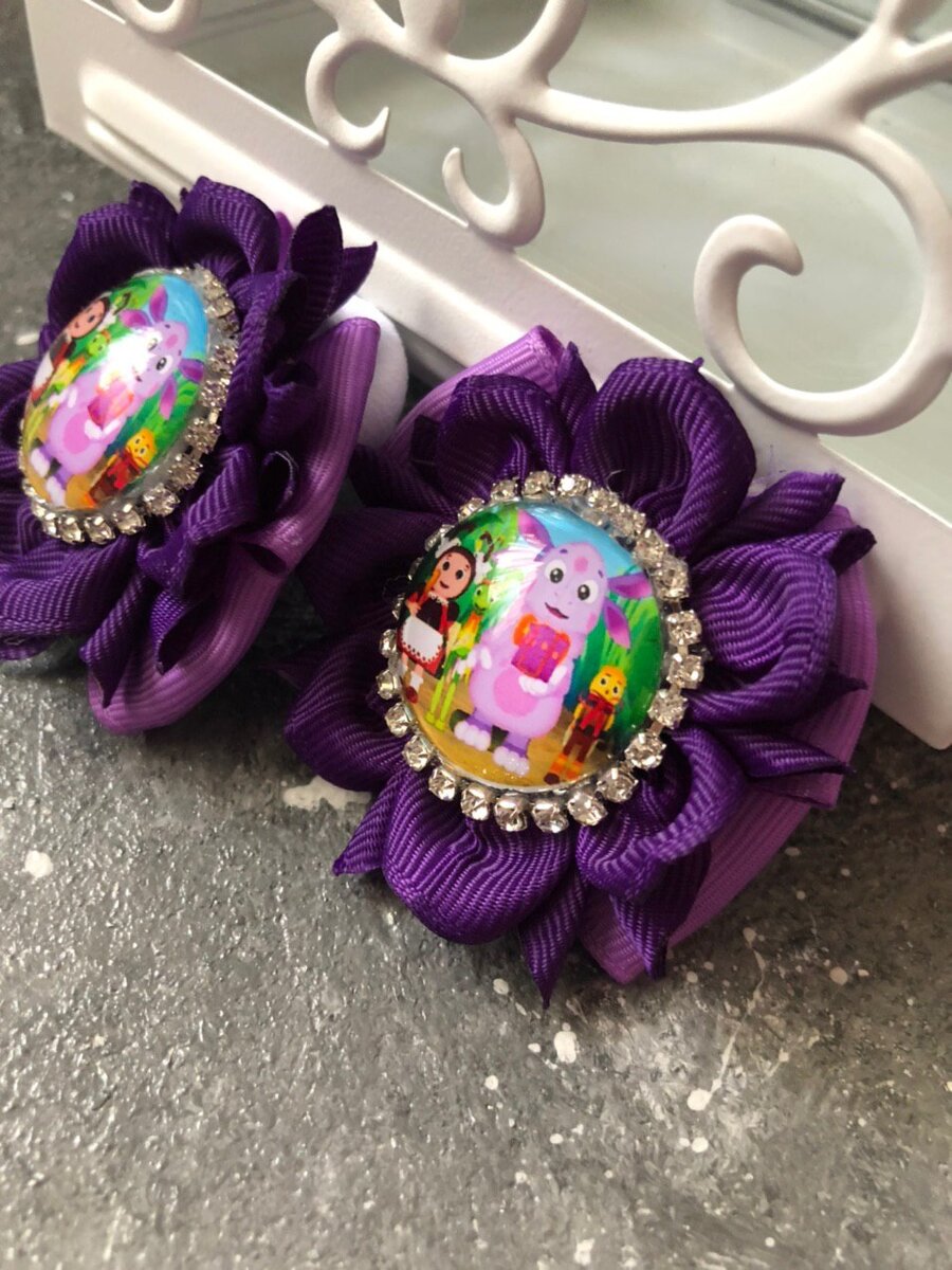 Заколки с кабашонами из мультика Лунтик
