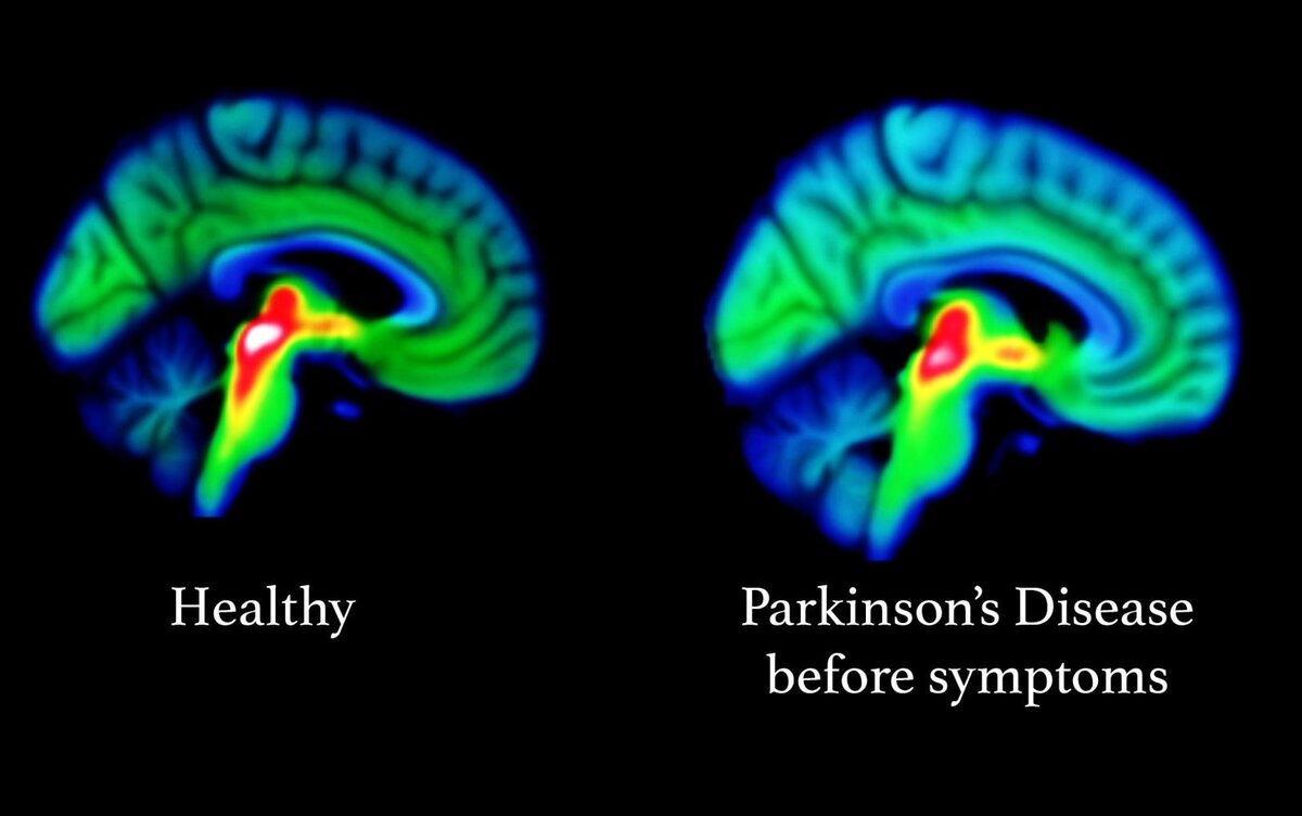 Мозг человека - это сеть нейронов, и если погибает целая прослойка клеток, то сигнал от мозга не может быстро пройти до конечностей. Поэтому у паркинсонщиков возникают трудности с моторикой рук и ног. Но мозг человека - это очень пластичная структура, и соседние клетки могут брать функции погибших собратьев на себя. Поэтому на начальной стадии болезни Паркинсона мозг может успешно компенсировать эти нарушения. На начальных этапах развития патологии человек, как правило, не чувствует никакой симптоматики, и диагностировать Паркинсон можно только по результатам МРТ головного мозга. В процентном соотношении должно погибнуть 70 - 80% черной субстанции клеток, чтобы пациент начал испытывать характерные признаки болезни Паркинсона. Но помочь этому больному уже нельзя, так как черная субстанция у него практически погибла.