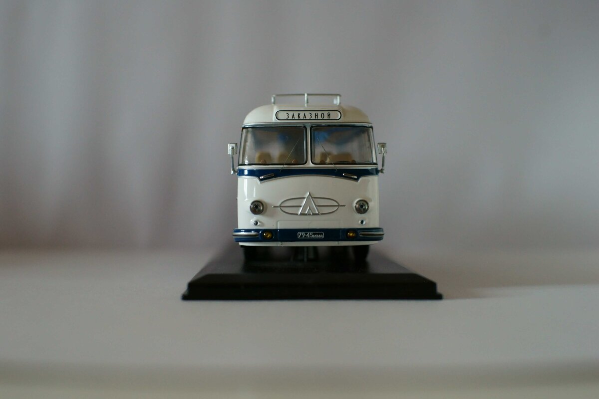 После эйфории, связанной с приобретением ПАЗ-672, решение о покупке следующей модели было принято достаточно скоро. Правда, стоит сразу сказать, что занятие это не из дешёвых и иногда нужно быть готовым к "диете" для кошелька. Есть конечно и в моей коллекции бюджетные модели, но их приобретение скорее связано с какими-то личными воспоминаниями, либо хорошим внешним исполнением, без оглядки на внутреннее её убранство. Но вернёмся к модели ЛАЗа. Так уж получилось, что я приобрёл последнюю модель из партии. По крайней мере, после моего заказа она исчезла из наличия на сайте. И, видимо поэтому, на модели присутствует очень незначительный брак по покраске на колпаке колёсного диска. Обидно, но поправимо. В остальном модель идеальна. Аккуратно и изящно выполнена покраска с логотипом компании "Интурист". Очень много элементов исполнены отдельными деталями, что, конечно же, добавляет модели естественности восприятия. Отдельно хочется поблагодарить компанию ClassicBus за номерные знаки, которы