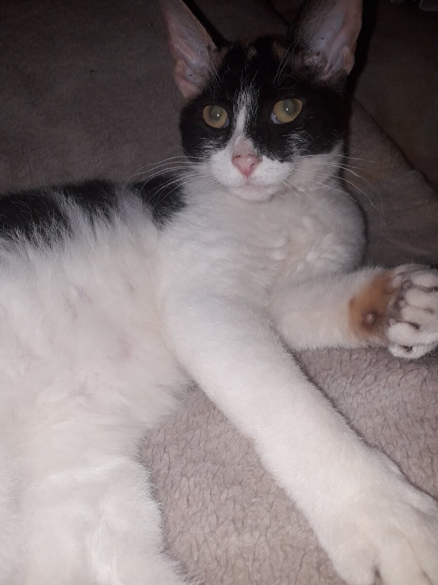 "Холодный осенний вечер… Время близится ко сну, но, погодите! К нам кто-то идет." Так все и было, сейчас расскажу поподробнее. В общем, дело было в октябре, пятого числа. В тот период времени, моя бабушка слегла в больницу. Так как была она уже преклонного возраста, с ней нужно было дежурить. Моя мать, как раз таки и пошла к ней на ночь, но по кое-какой причине так и не дошла до нее. Я, будучи дома, уже закрыла все двери и готовилась ко сну, как вдруг в коридоре послышался стук. Как оказалось, от входной двери. "Кто там?" - задала я вопрос, но ответа не последовало. Секунды сомнения, но я все же открыла дверь. На пороге стояла моя мать и что-то сидело у нее на плече. Что-то не большое и… Кошка! Взрослая кошка. Огромные уши и глубокие глаза смотрели прямо мне в душу. Где же она ее подобрала? Кошка сама ее нашла, просто бежала за ней, а как моя мать остановилась просто запрыгнула ей в руки. Так и шли они в обнимку к нам домой. По дороге, мама репетировала речь, чтобы объясниться о