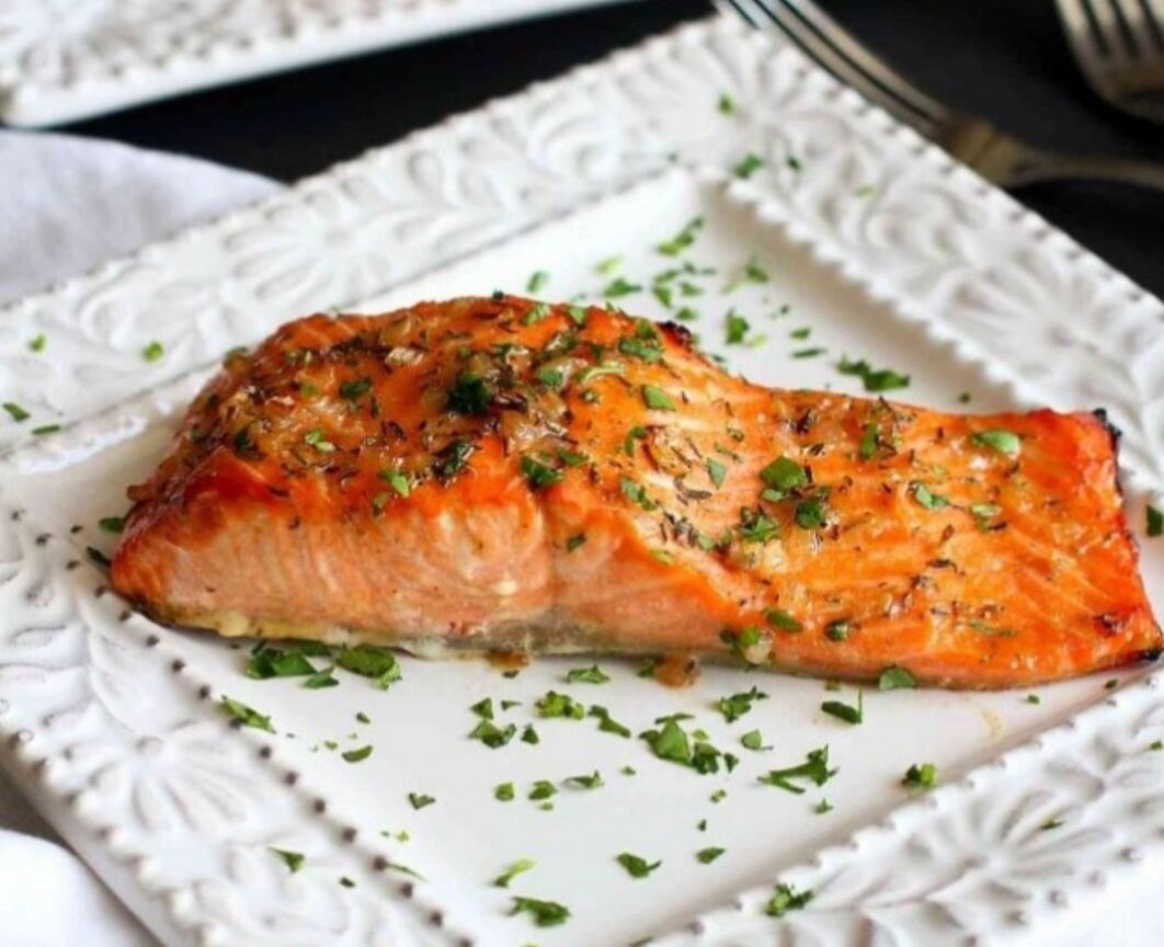 Вопреки мифам от жирной морской рыбы не поправляются. В ней содержатся жизненно необходимые для организма омега-кислоты 200 г лосося 1 ст л соевого соуса 1 ч л меда 1 ч л горчицы черный перец В небольшой кастрюльке нагреть соевый соус, горчицу и мед. Этим маринадом залить филе лосося посыпать перцем (или другими любимыми специями) и дать немного постоять. Поставить в разогретую духовку и запекать примерно 15-20 минут при 180 градусах, стараясь не пересушить. В качестве гарнира подойдут зелень или паровые овощи. Приятного аппетита ( еще много интересных рецептов в моем журнале)