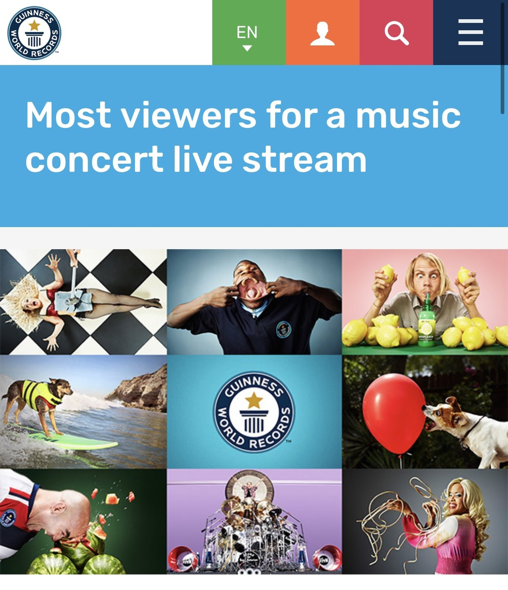"Самое большое количество зрителей музыкального концертного лайвстрима — 756,000, и этот рекорд достигнут BTS (Республика Корея) во время трансляции их концерта Bang Bang Con: The Live из Сеула, Южная Корея, 14 июня 2020.
