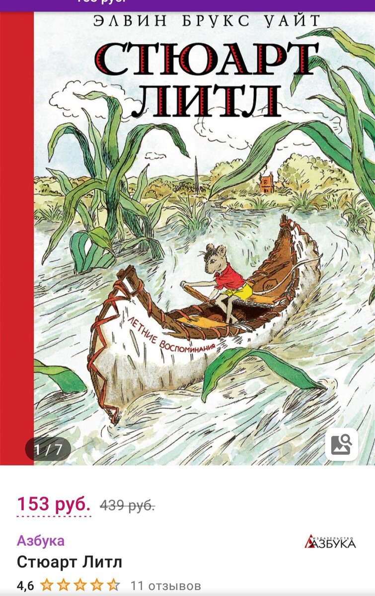 Как мне нравятся повести, сказки про мини-зверят, для которых наш мир ещё больше и удивительнее, чем для нас самих. Одна из них "Стюарт Литл" Элвина Брукса Уайта. ⠀ Вот игрушечное судно превращается в огромный парусник, годный для гонки в пруду. А папоротник в гостиной - отличное место отдыха. И сколько невероятных приключений впереди... ⠀ Стюарт Литл знаком мне по одноименному фильму (1999 г.), который нравился в детстве. Да и многие, наверное, помнят его и поросёнка Бэйба (1995 г.), их показывали по tv довольно часто. ⠀ Кстати, в фильме Стюарт усыновлён, а в книге у Литлов-людей родился сын-мышонок. Никитка удивился и задал вопрос, может ли такое быть! 🤣 ⠀ Издание порадовало иллюстрациями, здесь неброские, но красиво прорисованные реалистичные картинки Гарта Уильямса. А ещё бонус - на wildberries книга со скидкой обойдётся по смешной цене. ⠀ #издательствоазбука #лето #подборкакниг #книгидлядетей #подборкалетнихкниг